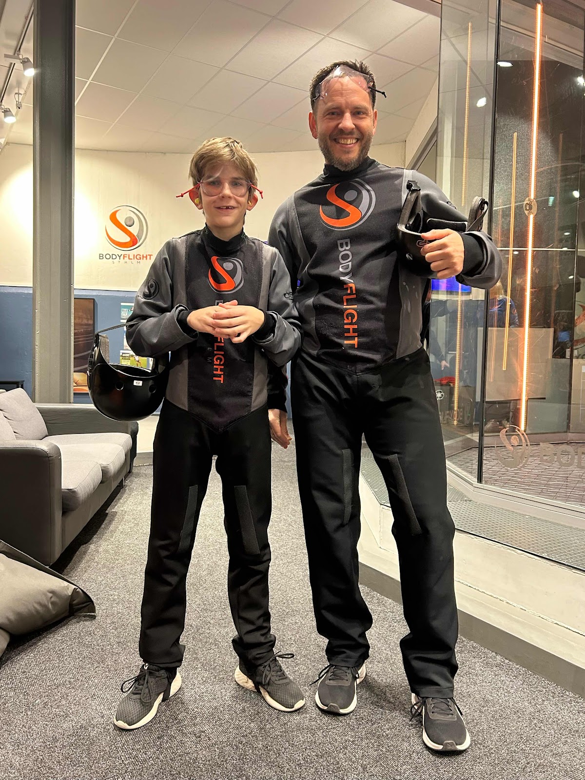 På eftermiddagen drog hela familjen till Bodyflight i Bromma. Det var dock bara jag och Oskar som ville flyga.