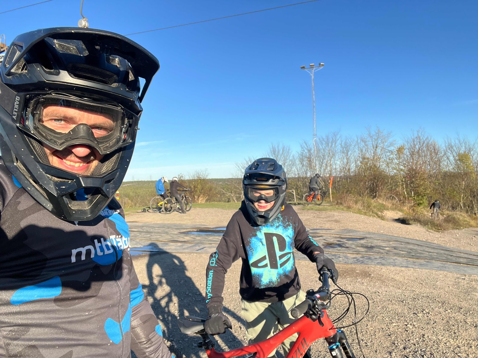 Sen skulle Oskar testa hoppet som han körde förra veckan ifrån Freeride banan över till Endurobanan.