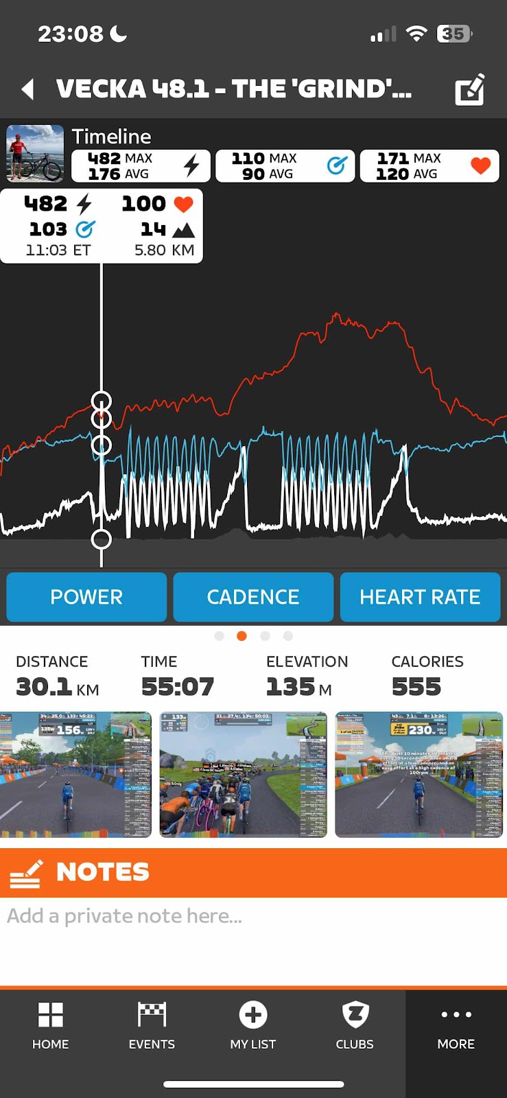 Fick bli det passet idag istället. Var kort och lagom hårt med intervaller på 90-115% av FTP.