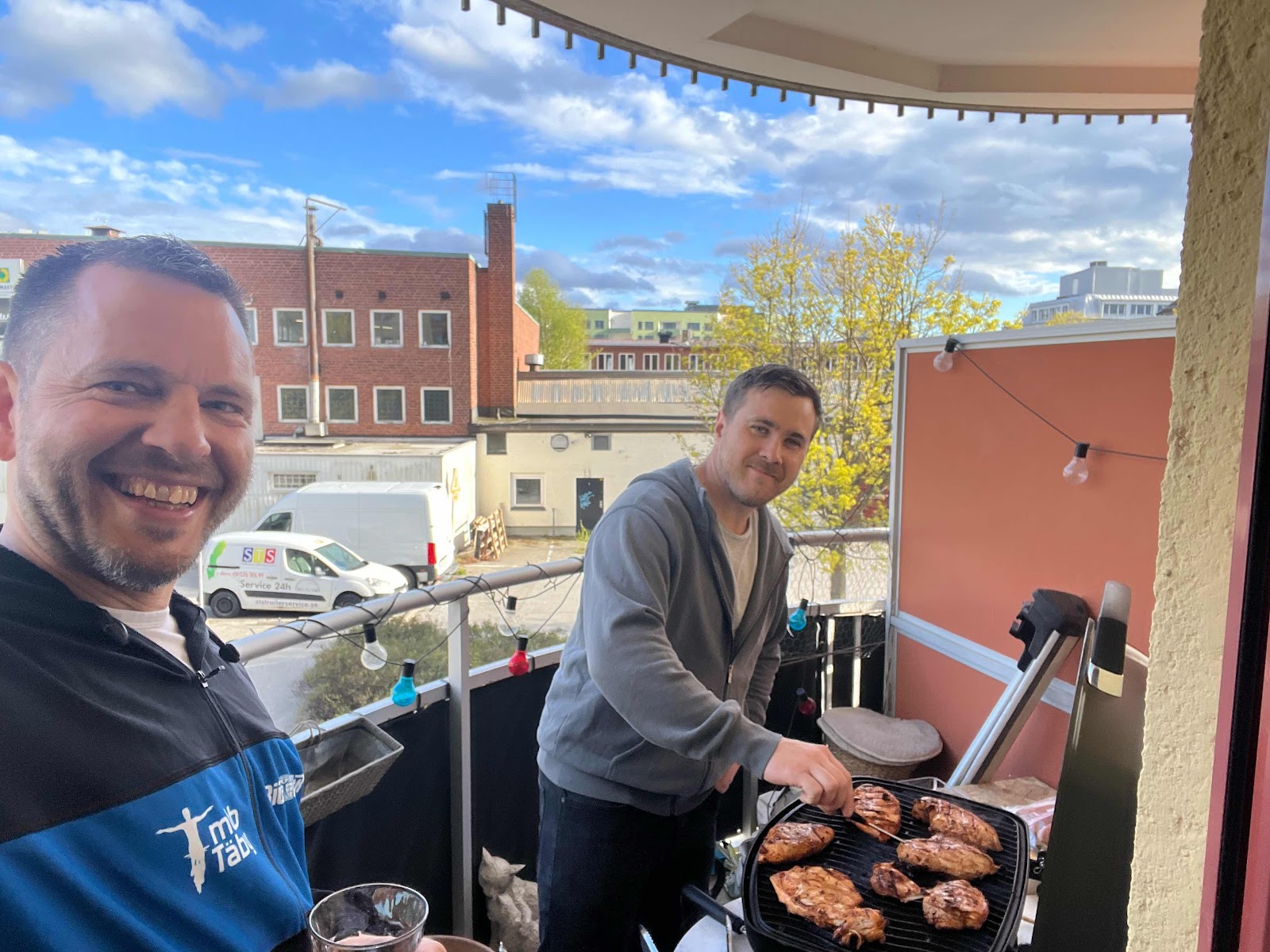 Blev grill hemma hos Peter och Caroline först. Riktigt gott med lite grillat, sommarkänslorna kommer till liv då.