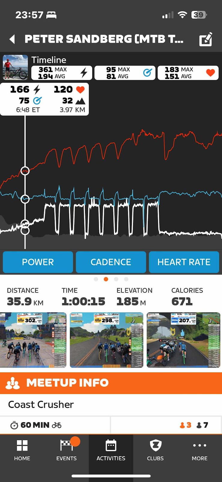 Det var 8 stycken 3 minuters intervaller på 105% av FTP med bara 1 minuts vila emellan.
