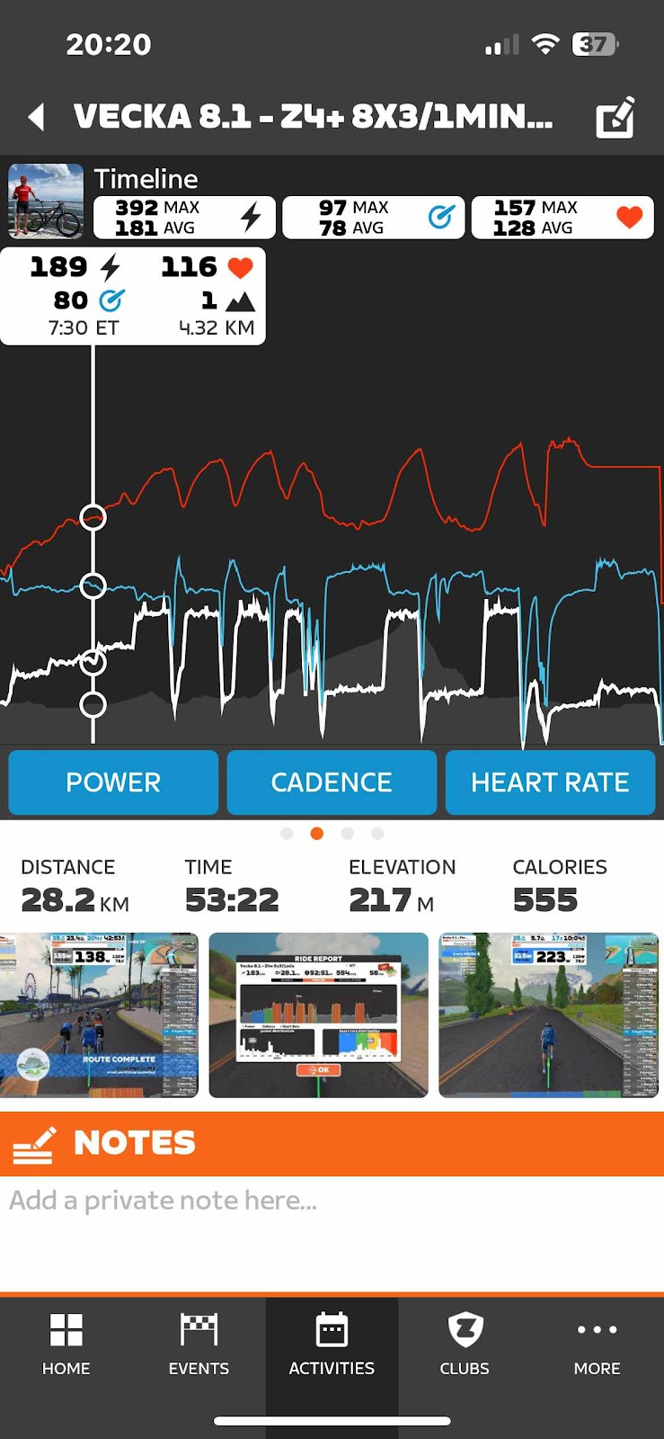 Andningen var inte så farlig men pulsen drog iväg lite mer idag.