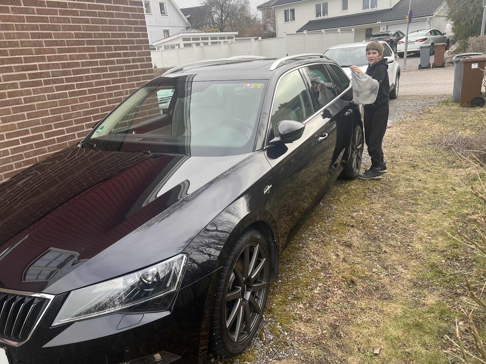 Oskar fick köra lite tireshine på däcken och plastlisterna och fixa bilen invändigt.