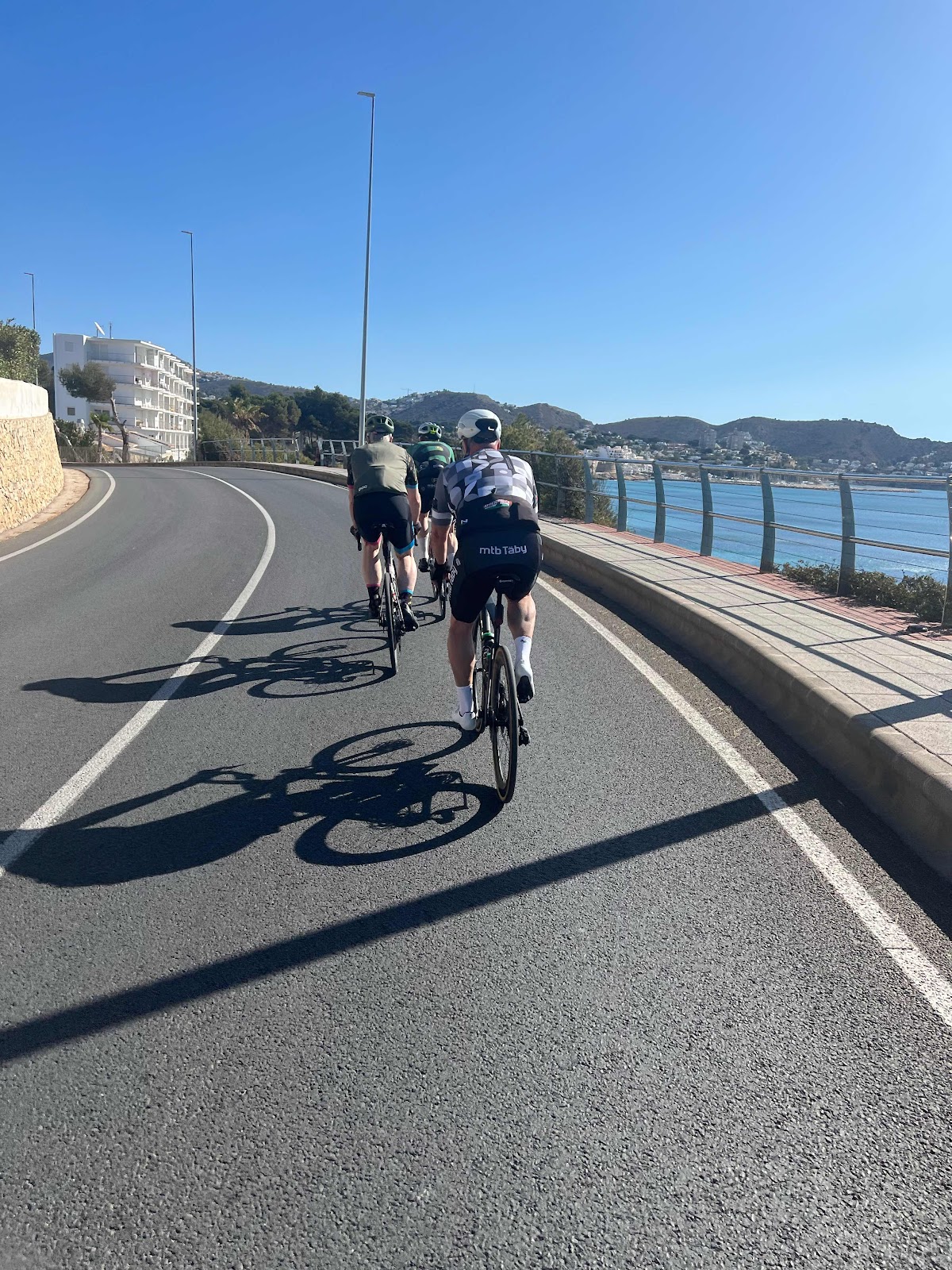 Sen bar det upp i bergen innan det var dags för lunch på ett fint cykelfik.