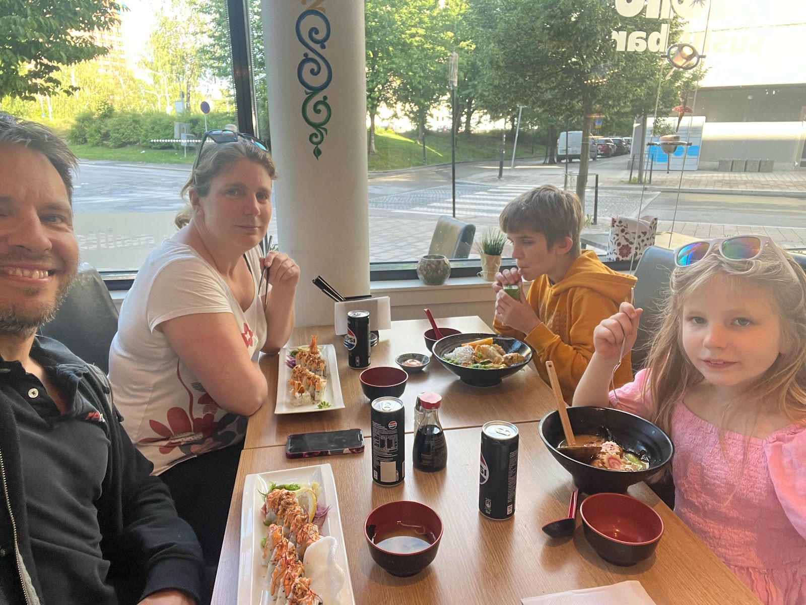 Både Oskar och Emilia har börjat gilla sushi mer och mer och har börjat testa nya smaker och inte bara tagit avokadosudhin som de ätit förut.