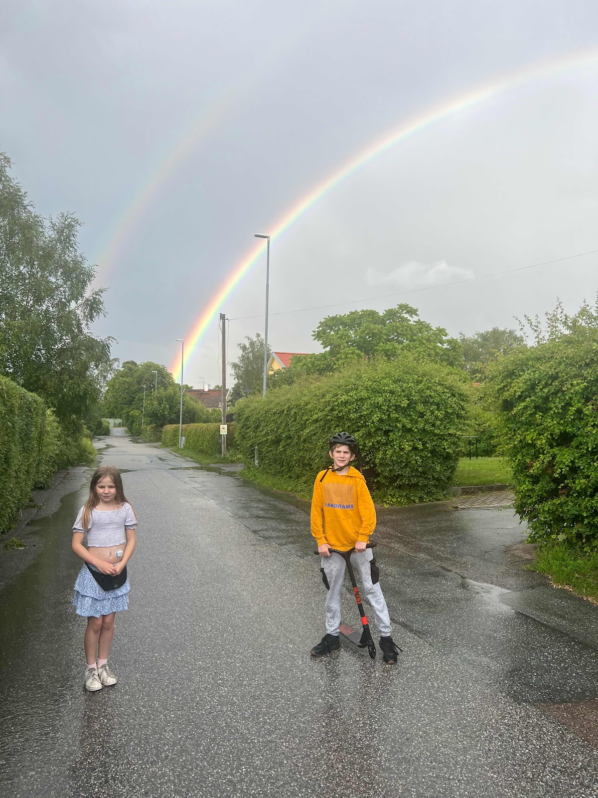 Vänta ut det värsta innan vi knata hem. Fick se en fin regnbåge i alla fall.