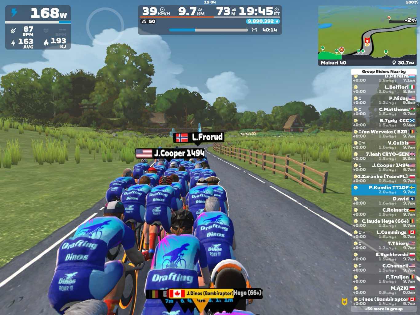 På kvällen blev det en lugn groupride på Zwift en timme.