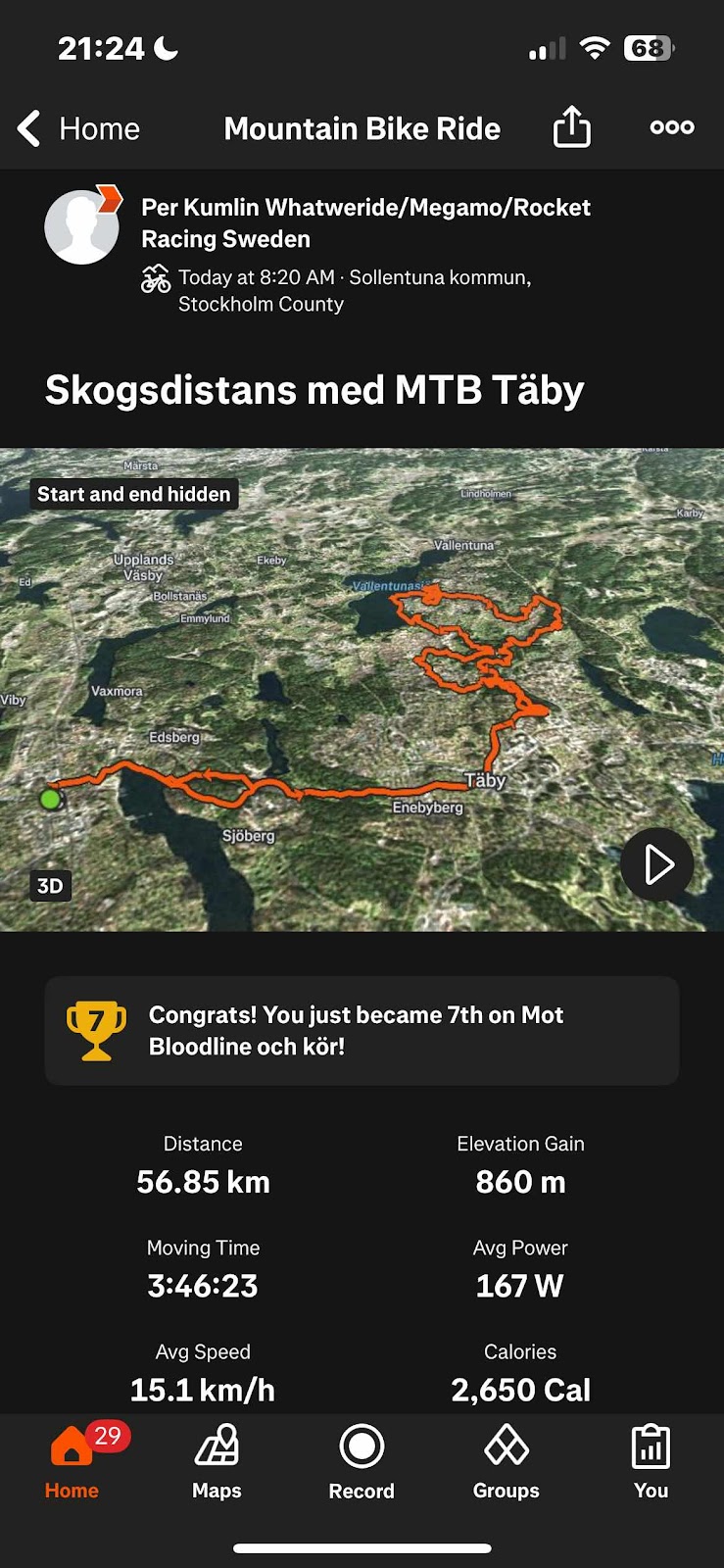 Blev en riktigt fin runda upp mot Vallentunasjön och sen bort mot Uthamra och sen hemåt via Jarlabanke Golfklubb och Löttingekulen.