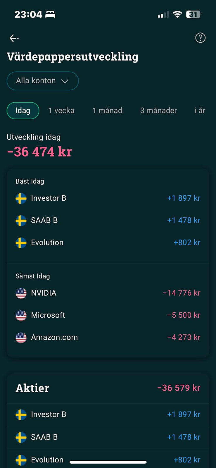 Har ju haft en hel del på den Amerikanska börsen och då mycket inom tekniksektorn och AI som Nvidia, Microsoft och Tesla.